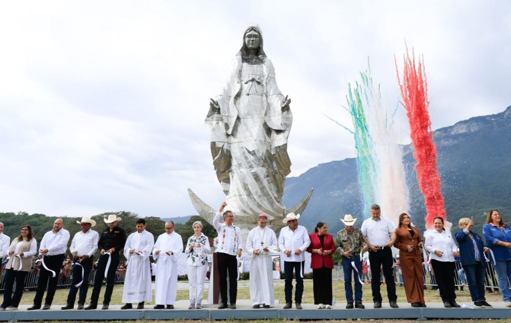 Entregan Américo y María escultura monumental de la Virgen de la Misericordia en El Chorrito