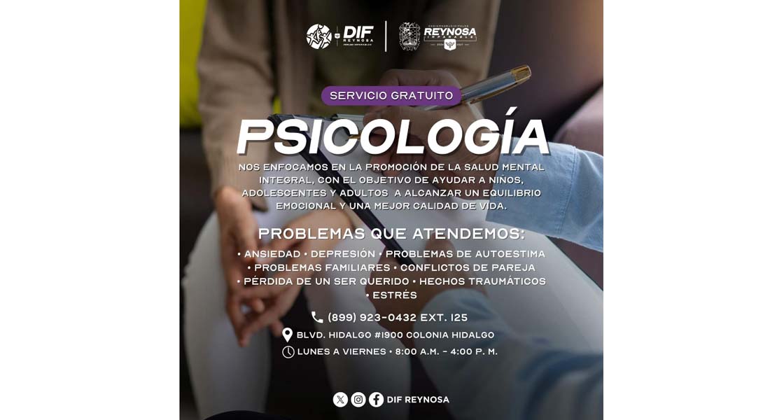 Ofrece DIF-Reynosa atención psicológica gratuita para fortalecer la salud mental