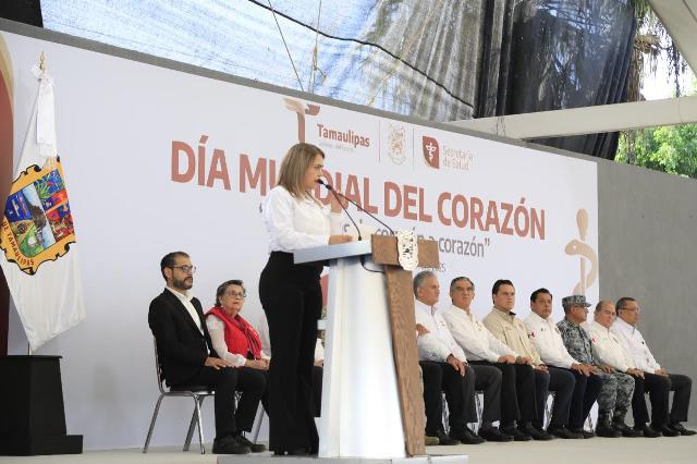 “Con la conducción de nuestro gobernador, el doctor Américo Villarreal Anaya, seguiremos impulsando políticas, programas y acciones que combinan ciencia, prevención y humanidad. De corazón a corazón, contribuiremos a lograr un Tamaulipas con el pleno ejercicio del derecho humano a la salud, un Tamaulipas saludable y feliz”, expresó.