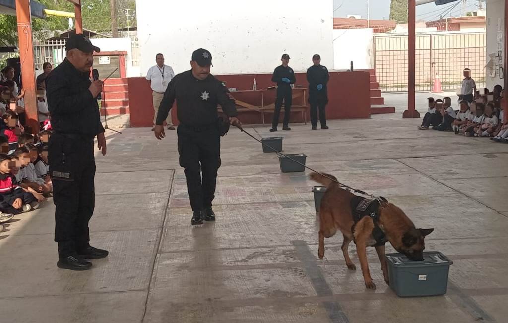 Niñas y niños vivieron una jornada de aprendizaje al recibir la visita de “Max”, un canino de la Guardia Estatal cuya misión es detectar narcóticos.