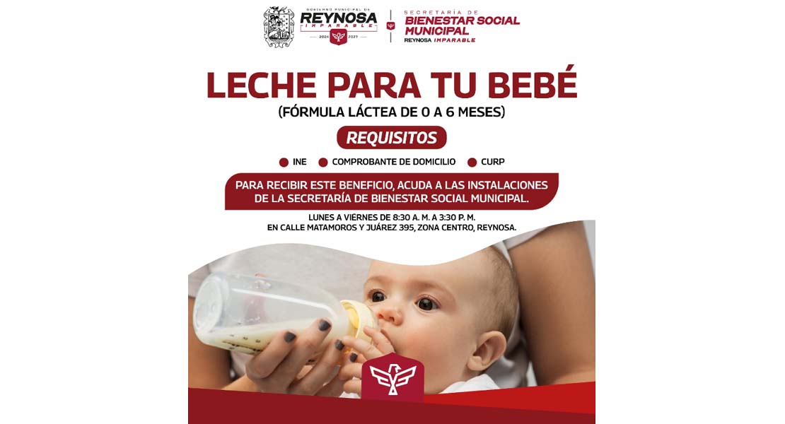 Reynosa, Tam.- El Alcalde Carlos Peña Ortiz pone a disposición de las madres reynosenses con bebés de cero a seis meses de edad, un esquema de apoyo denominado «Leche para Tu Bebé», dotación gratuita de una fórmula láctea.