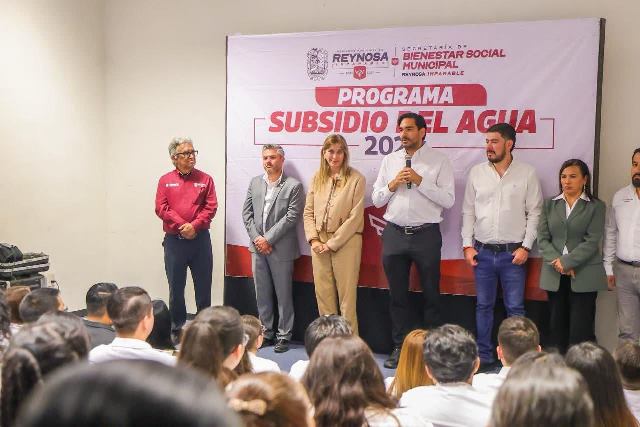 «Tenemos este beneficio, un subsidio que se da por el agradecimiento que les tenemos aquí en Reynosa por todo el trabajo que hacen, queremos es que se ahorren ese dinero de los subsidios mensuales del agua», les expresó el Presidente Municipal.