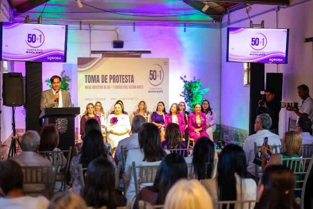 Reynosa, Tam.- Reafirmando su compromiso con la participación y el liderazgo de las mujeres, el Alcalde Carlos Peña Ortiz asistió como invitado a la Toma de Protesta de la Mesa Directiva del Colectivo 50+1 Tamaulipas, Capítulo Región Norte, con la presencia de la dirigente estatal Andrea García García.