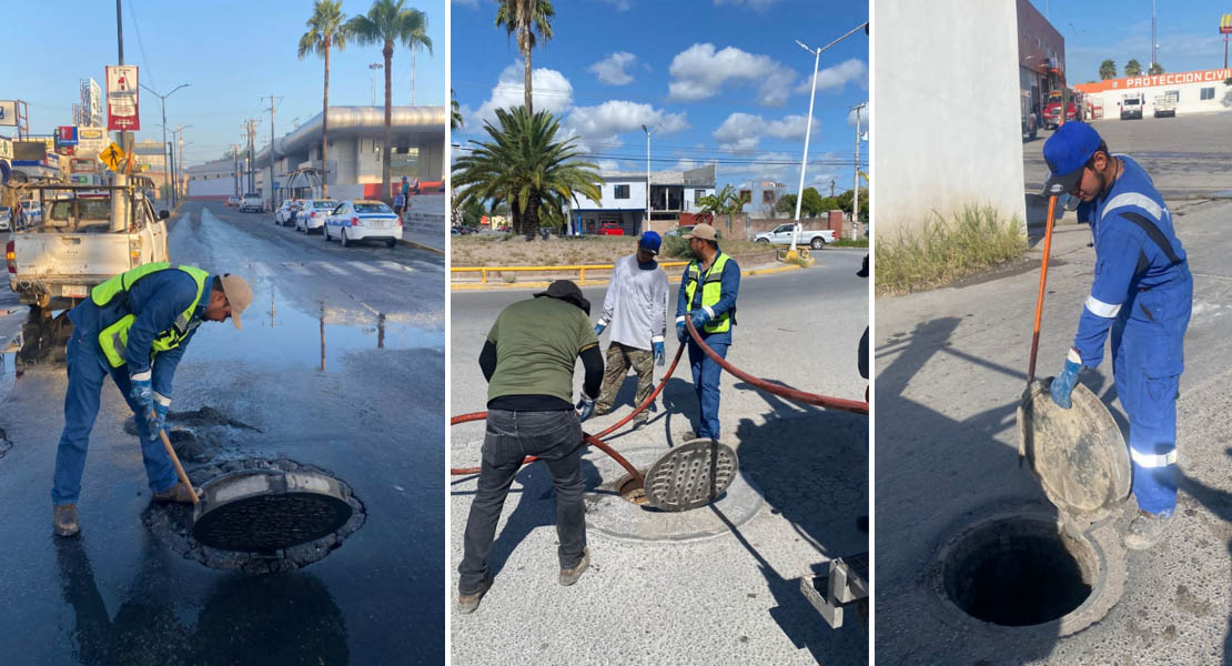 Las maniobras se efectuaron en sectores como la colonia Hacienda Las Fuentes III, Zona Centro, Emiliano Zapata, Longoria, Las Delicias y Revolución Verde, específicamente en calles Caracas, Miguel Alemán, Bulevar Álvaro Obregón, Tercera, Blanca y Alianza, donde se atendieron diferentes puntos para optimizar el sistema de drenaje sanitario.