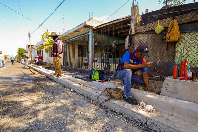 El trabajo en proceso se realiza en más de 2,300 metros cuadrados entre las calles Miguel Hidalgo y Salinas de Gortari, donde se renueva una línea de agua potable de 240 metros lineales además de 36 descargas sanitarias y 36 tomas de agua, y 18 luminarias nuevas.