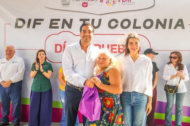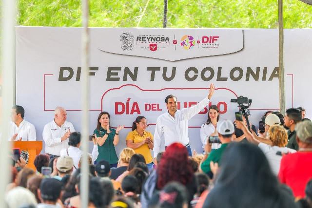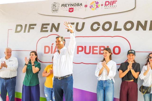 Reynosa, Tam.- El programa DIF En Tu Colonia fue llevado por el Alcalde Carlos Peña Ortiz y la Presidenta del Voluntariado DIF Reynosa, Alejandra Yelitza Garza, en una brigada de servicios integrales para brindar mayor bienestar a las familias de la colonia Las Torres, donde miembros del Cabildo y funcionarios municipales apoyaron las actividades dirigidas a niños, jóvenes, adultos y personas de la tercera edad.