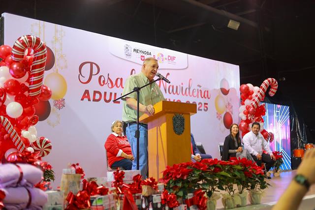 Reynosa, Tam.- El Alcalde, Carlos Peña Ortiz, a través del Sistema DIF-Reynosa que preside Carlos Luis Peña Garza, llevó a cabo la tradicional Posada Navideña Adulto Activo 2025, donde más de Mil abuelitos de los programas del organismo de asistencia social, disfrutaron de música, baile, comida y muchos regalos, destacando su papel como pilar de las familias, ejemplo de entrega, fortaleza y acompañamiento para las nuevas generaciones.