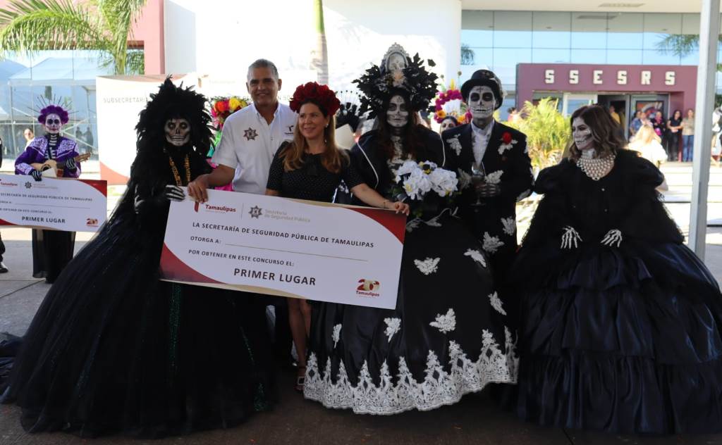 Ciudad Victoria, Tamaulipas.- Con un colorido desfile lleno de flores, trajes tradicionales y música, personal operativo y administrativo de la Secretaría de Seguridad Pública de Tamaulipas (SSPT) celebró el Día de Muertos con el concurso interno de catrinas y catrines 2025.