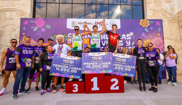 Reynosa, Tam.- La Presidenta del Voluntariado DIF-Reynosa, Alejandra Yelitza Garza, en representación del Alcalde, felicitó a los competidores de la Carrera Huellas, Velas y Calaveras, que con total éxito fue celebrada este domingo con la participación de 600 corredores, que reunieron más de 10 toneladas de alimento para perros y gatos, contando con un importante donativo de Brandon Lara, Subdirector del Instituto Nacional de Pueblos Indígenas, quien participó en el evento.