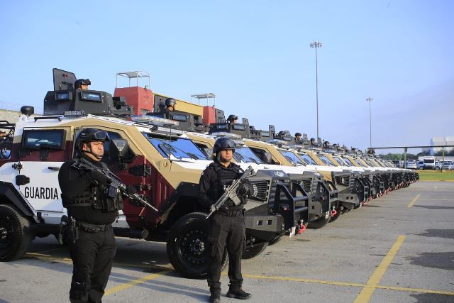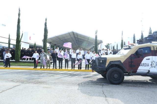 Durante el evento, en el Complejo Estatal de Seguridad Pública, el gobernador dio el banderazo a 14 vehículos blindados tipo Mamba y 15 camionetas pick up Ram 2500, para fortalecer el despliegue operativo de la corporación.