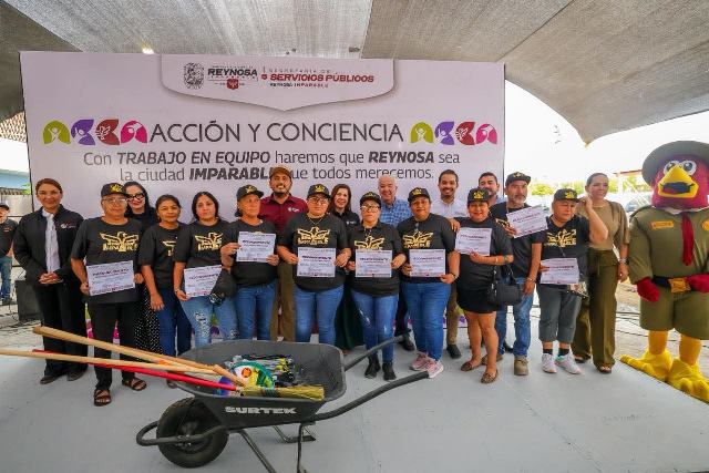 Reynosa, Tam.- El programa municipal «Acción y Conciencia» impulsado por el Alcalde de Reynosa, Carlos Peña Ortiz, finalizó con éxito en la colonia Aquiles Serdán 1, donde destacó la participación de las familias en una actividad bipartita entre sociedad y Gobierno por el saneamiento de nuestra ciudad.