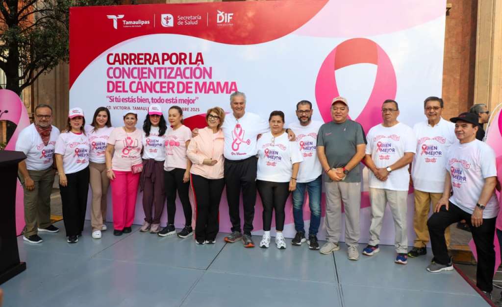 Como parte de las actividades para conmemorar el Día Internacional de Lucha contra el Cáncer de Mama y acompañado de la líder de la burocracia estatal, Blanca Valles Rodríguez; de la presidenta del Supremo Tribunal de Justicia, Tania Contreras López; y de su esposa la señora Yolanda Rivera de Hernández, el titular de Salud llevó a cabo la carrera de concientización y sensibilización de este padecimiento, así como incrementar la responsabilidad de mujeres, hombres y población en general en la prevención y detección temprana del cáncer de mama.