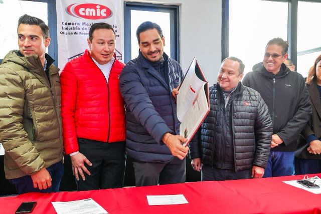 Reynosa, Tam.- El Presidente Municipal Carlos Peña Ortiz se reunió con Pablo Eduardo Haro Panduro y Roberto Aviles Arizpe, Dirigentes estatal y regional de la Cámara Mexicana de la Industria de la Construcción, quienes le entregaron el Libro Conmemorativo de los 50 Años de la CMIC Tamaulipas.