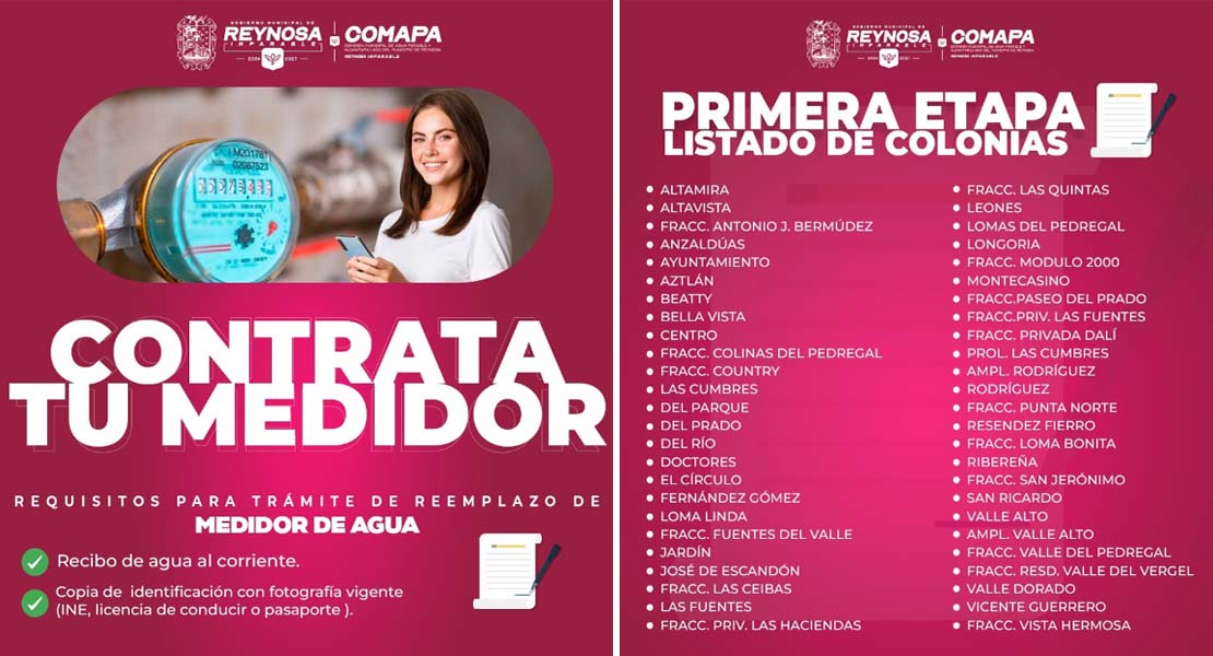 Esta medida iniciará en 52 colonias, con el objetivo de regularizar el consumo y fortalecer el uso responsable del agua. COMAPA exhorta a los usuarios a instalar su medidor, ya que el consumo promedio medido en estas zonas es de 15 metros cúbicos mensuales, lo que representa un menor cobro.