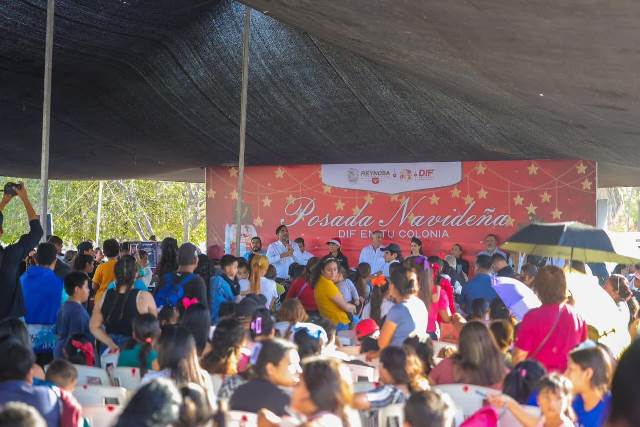 Reynosa, Tam.- Una tarde llena de sonrisas y regalos vivieron más de 2,500 niños y adultos de la colonia Villas de Esmeralda, al convivir en la Posada DIF 2025 con el Alcalde Carlos Peña Ortiz, quien tuvo la oportunidad de seguir cerca de la gente, junto a su esposa Alejandra Yelitza Garza, Presidenta del Voluntariado DIF-Reynosa y al Lic. Carlos Luis Peña Garza, Presidente del Patronato del DIF.