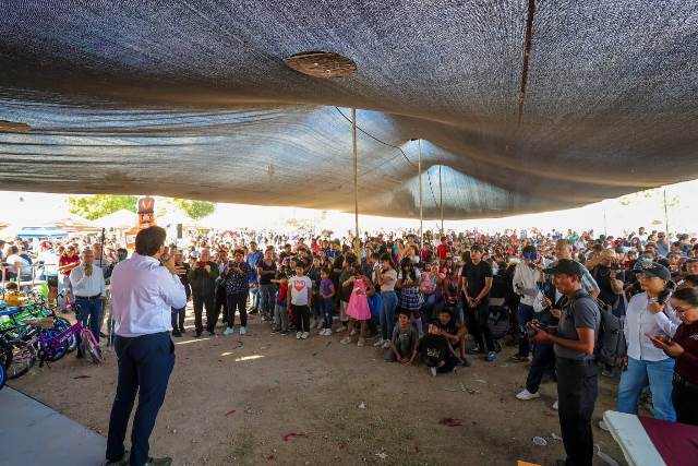 Reynosa, Tam.- Una tarde llena de sonrisas y regalos vivieron más de 2,500 niños y adultos de la colonia Villas de Esmeralda, al convivir en la Posada DIF 2025 con el Alcalde Carlos Peña Ortiz, quien tuvo la oportunidad de seguir cerca de la gente, junto a su esposa Alejandra Yelitza Garza, Presidenta del Voluntariado DIF-Reynosa y al Lic. Carlos Luis Peña Garza, Presidente del Patronato del DIF.