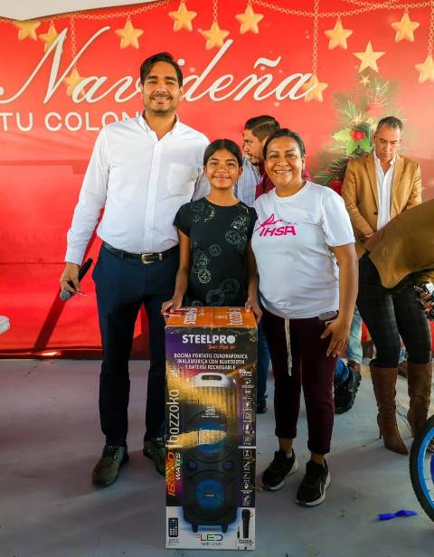 «Agradezco a todos los vecinos por recibirnos como siempre de la mejor manera y comentarles en esta época navideña que nosotros como gobierno nos estamos preparando para poder entregar más becas en el 2026», anunció y les deseó que tengan una Feliz Navidad este 2025, acompañado por directivos del DIF-Reynosa.