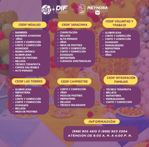 Las personas interesadas pueden acudir a su centro CEDIF más cercano o comunicarse para obtener mayor información a los teléfonos 8999254615 y 8999232564.