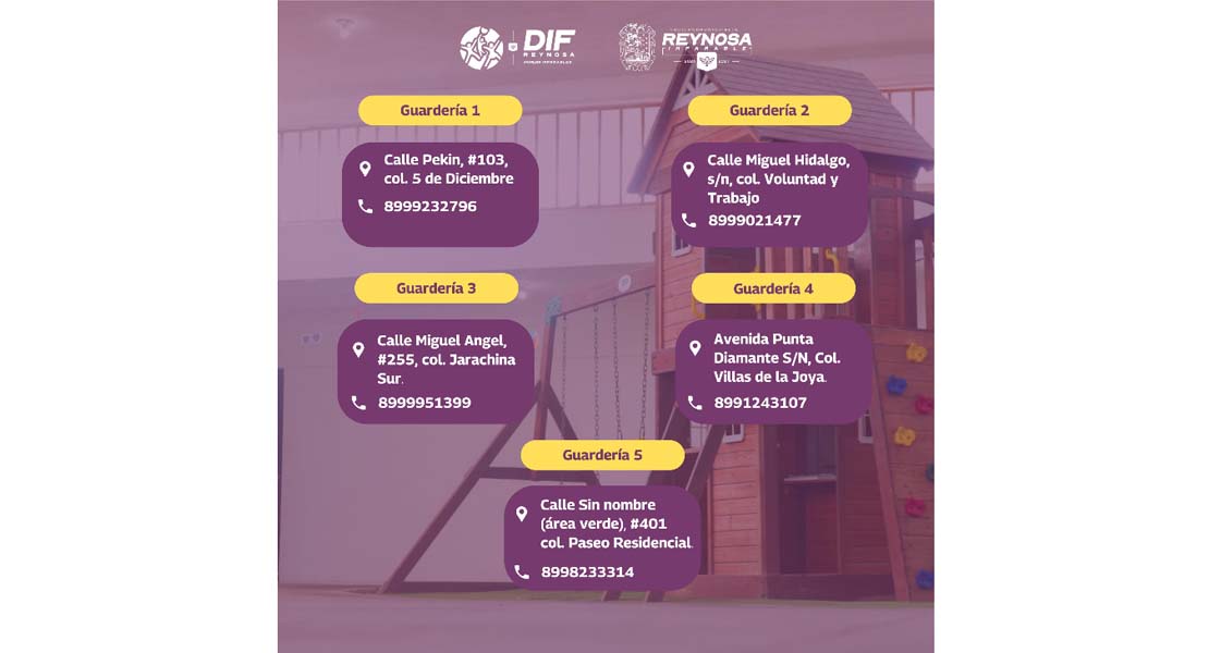 Actualmente, el DIF cuenta con guarderías distribuidas en distintos sectores de la ciudad, con el objetivo de apoyar a las familias reynosenses; el periodo de preinscripción es del 3 al 13 de febrero.