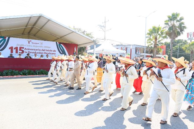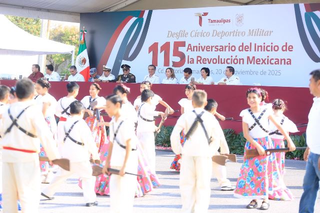 - Presidida por el gobernador Américo Villarreal, la fiesta cívica transcurre en paz, con la participación de más de 3,500 estudiantes, militares y elementos de seguridad
