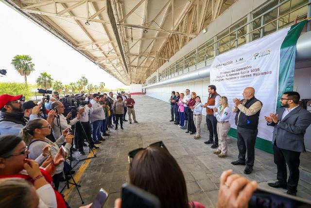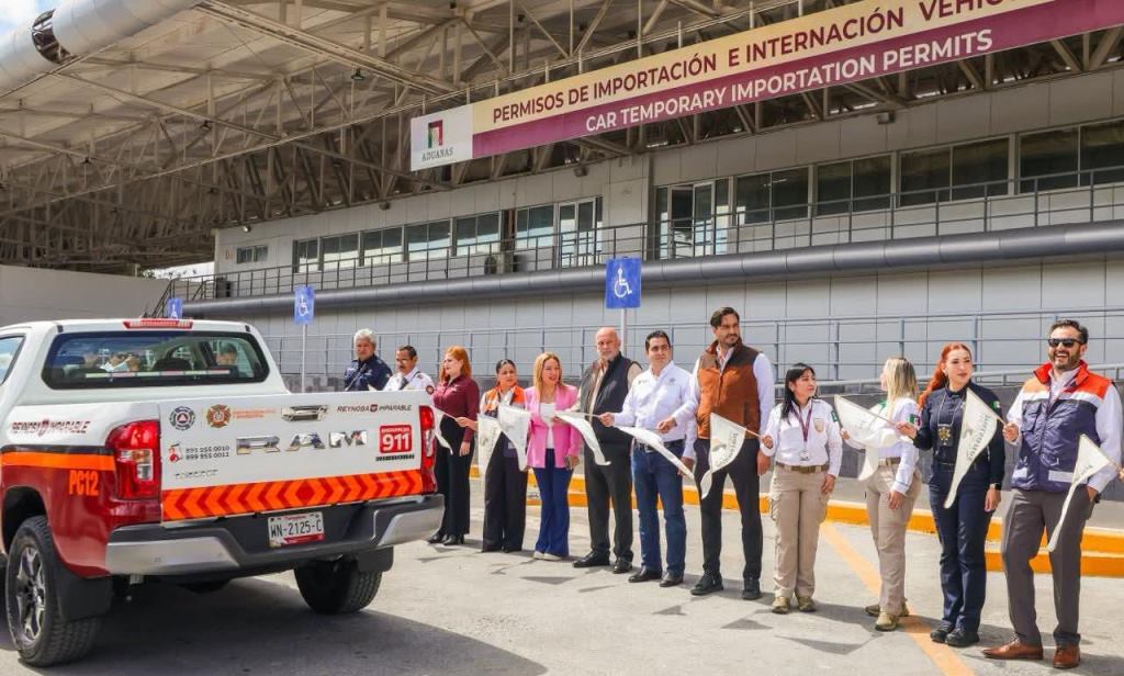Reynosa, Tam.- El Presidente Municipal Carlos Peña Ortiz dio el banderazo de inicio al Operativo Especial de Semana Santa 2026, del programa Heroínas y Héroes Paisanos, junto con Karen Yamileth Santivañez Arias, representante local del Instituto Nacional de Migración; Yazmín Rivas Vázquez, encargada del Programa Paisano, y César Nacianceno López, Director Regional de Operaciones de la Secretaría de Gobierno de Tamaulipas.