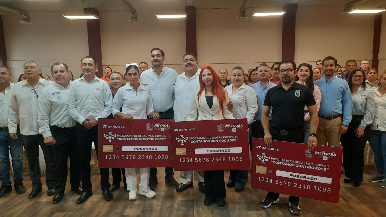 Reynosa, Tamaulipas. – El Alcalde de Reynosa, Carlos Peña Ortiz, entregó tarjetas bancarias a los beneficiarios de las Becas de Posgrado, dirigidas a estudiantes que cursan programas de Maestría o Doctorado.