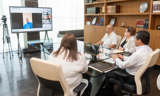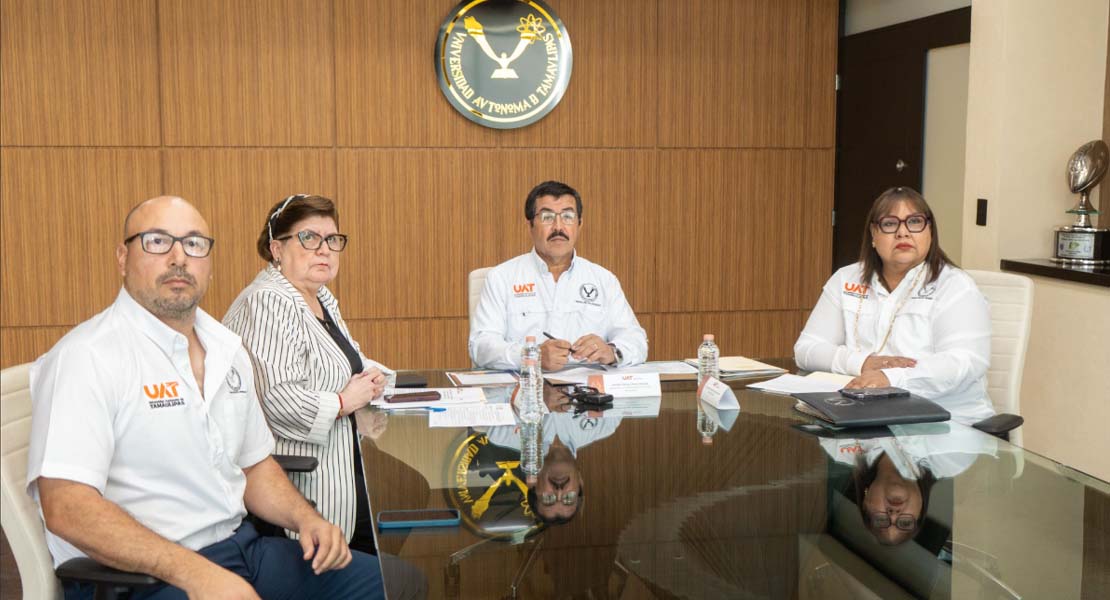 Ciudad Victoria, Tam.- La Universidad Autónoma de Tamaulipas fortaleció su proyección internacional y cooperación estratégica en innovación educativa, durante la reunión de trabajo que presidió el rector Dámaso Anaya Alvarado para la implementación del Manifiesto Institucional de Inteligencia Artificial de la UAT, con la participación de autoridades académicas de la Universidad Sharda, de la India.