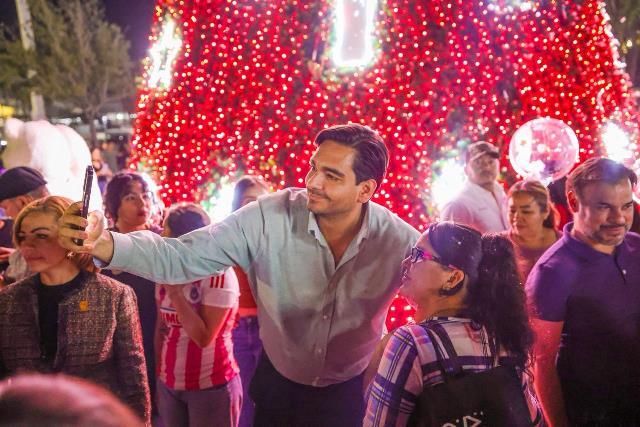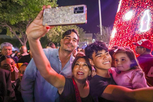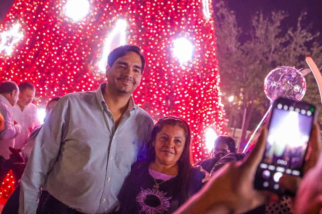 Reynosa, Tam.- El Presidente Municipal Carlos Peña Ortiz, acompañado de su esposa, Alejandra Yelitza Garza, ¡encendió el Pino de Navidad 2025 de la compañía Arca Continental en la Plaza de la República! Un momento mágico que llenó de alegría a las familias que se dieron cita en este escenario lleno de diversión y magia navideña.