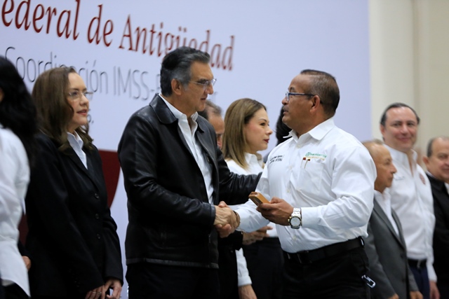 Por 55 años, se reconoció a Oscar Javier Álvarez Meléndez, médico especialista «C» del Hospital Civil de Victoria y a Alma Rosa Escobar Camacho, licenciada en Enfermería de la Oficina Central en Victoria, mientras que por 50 años recibieron su presea: Olga Castillo González, enfermera general titulada “A”; Distrito de Salud para el Bienestar VI en El Mante y Rubén Rodríguez Prado, jefe de sector en Programas de Salud en la Oficina Central de Victoria.