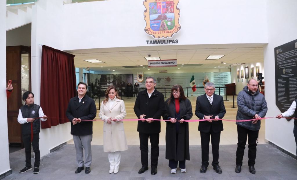 Cd. Victoria, Tam.- El Gobernador del Estado acompañó este lunes, la inauguración del Museo Legislativo, como un espacio permanente dentro del Congreso Local, que resguarda y difunde la memoria histórica de la representación popular tamaulipeca, para fortalecer la identidad institucional y el respeto por la vida democrática de la entidad.