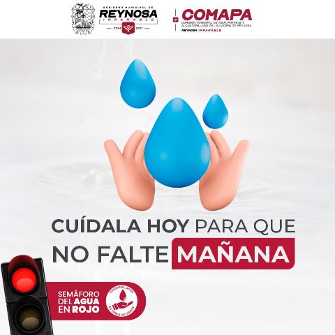 Reynosa, Tam.- La Comisión Municipal de Agua Potable y Alcantarillado de Reynosa hace un llamado urgente a toda la ciudadanía para redoblar las acciones de cuidado y uso responsable del agua, ante la importancia de preservar este recurso. Con el semáforo del agua en rojo, es fundamental que cada habitante contribuya a evitar el desperdicio, adoptando hábitos que permitan garantizar el suministro en los hogares y comunidades de nuestra ciudad.