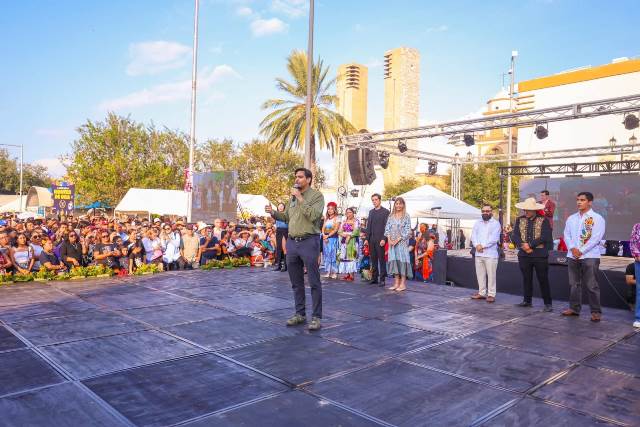Reynosa, Tam.- El Presidente Municipal Carlos Peña Ortiz y la Senadora de la República, Maki Esther Ortiz Domínguez, invitados a la fiesta de cultura popular y comunitaria más importante del estado de Tamaulipas «Xantolo Reynosa 2025»; acompañaron a Brandon Lara, Subdirector del INPI, Instituto de Pueblos Indígenas en la tradicional celebración llevada a cabo este sábado 25 de octubre, con la presencia de Ricardo Botello, Secretario Particular de la Secretaría General de Gobierno de Tamaulipas y más de 10,000 asistentes.