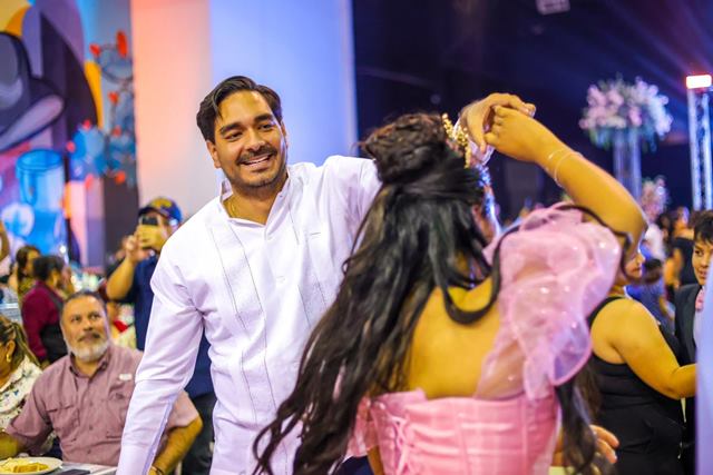 «Esta noche es muy importante, aquí tenemos el futuro de nuestro país, por eso siempre tenemos que luchar para que a ellas y también a los muchachos les vaya bien, estoy seguro que juntos vamos a construir ese país que queremos y anhelamos», dijo el Alcalde a las 50 señoritas y 32 jóvenes festejados, en uno de los momentos más importantes de sus vidas.