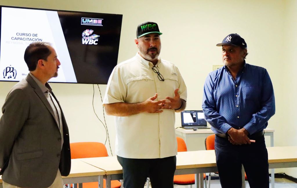 Reynosa, Tam.- Con el firme compromiso de fortalecer el deporte y profesionalizar la formación de entrenadores locales, el Gobierno de Reynosa, que encabeza el Alcalde Carlos Peña Ortiz, brindó su respaldo total a la realización de la clínica “Boxeo para Entrenadores”, organizada por el WBC, Consejo Mundial de Boxeo, en el Polideportivo de Reynosa.