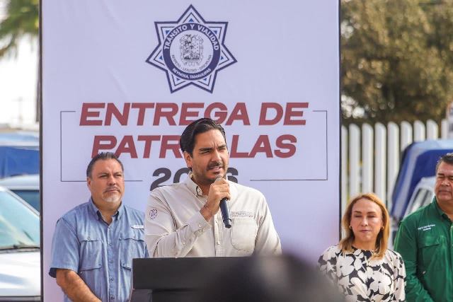Reynosa, Tam.- «Esta es una inversión que hacemos para la seguridad pública, lo que queremos es bajar los índices de choques y de mortalidad. Tenemos que poner orden, tal vez pediremos a la gente de aquí en adelante que hagan servicio comunitario, pero lo importante es que podamos resguardar a toda la población y siempre estamos velando por su bienestar», dijo el Presidente Municipal Carlos Peña Ortiz al hacer entrega de 14 Patrullas nuevas a la Policía Vial.