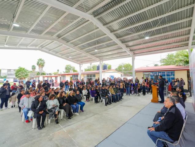 Entre la algarabía de los niños y el patente agradecimiento por la techumbre de 400 metros cuadrados que cubre el patio cívico de la institución ubicada en la colonia Burocrática, padres de familia y personal docente, con visible emoción cortaron el listón inaugural con el Presidente Municipal, funcionarios del Ayuntamiento, invitados y miembros del Cabildo.