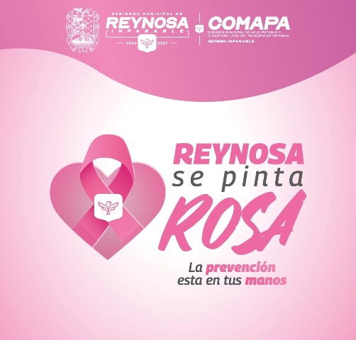 Reynosa, Tam.- Como parte de las acciones en el marco del Mes Rosa, la Comisión Municipal de Agua Potable y Alcantarillado de Reynosa se suma a la iniciativa del Gobierno Municipal y del DIF-Reynosa para reforzar la concientización sobre la importancia de la prevención y detección temprana del cáncer de mama.
