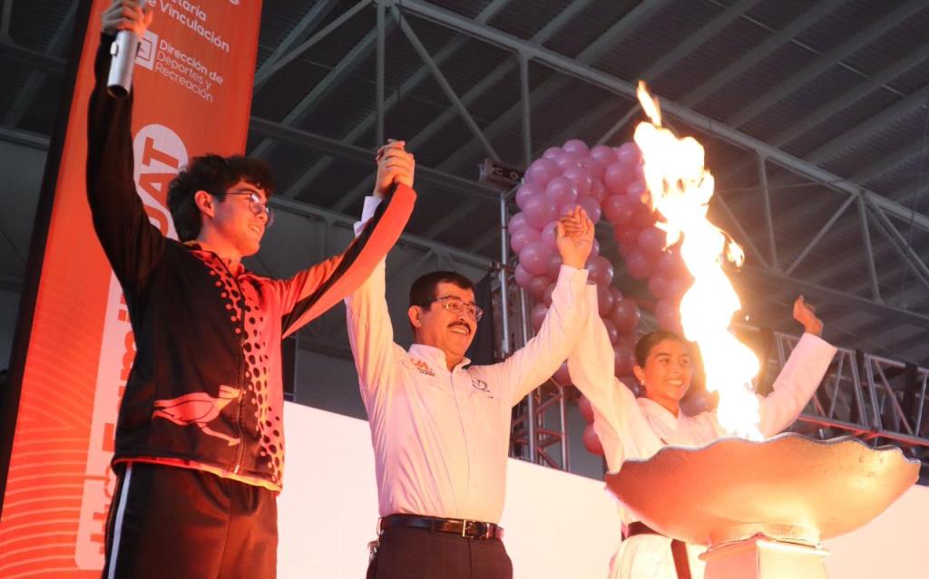 El evento incluyó la entrega de material deportivo por parte del rector y presentaciones artísticas, así como el reconocimiento de atletas universitarios que han conquistado medallas en los Juegos Nacionales Universitarios de la ANUIES y en competencias de federación. De igual manera, se llevó a cabo el encendido del pebetero con el fuego universitario y el juramento deportivo a cargo de la alumna Ashley Santos Puente.