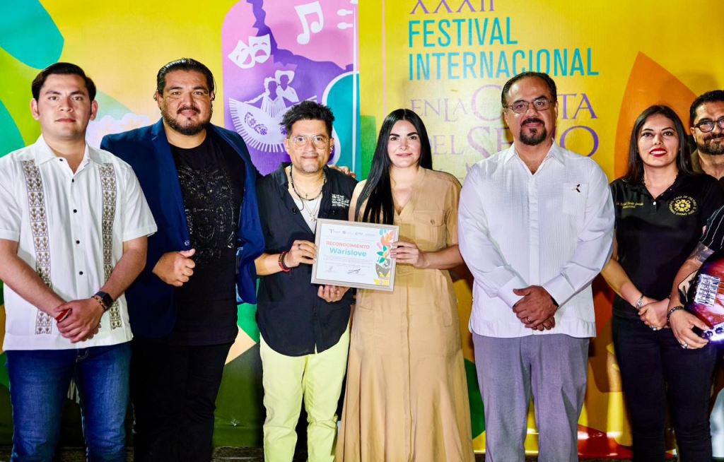 Como parte de la ceremonia inaugural, Crespo Solís entregó, junto con la alcaldesa y el director de Cultura Municipal, un reconocimiento al grupo Warislove por su participación y aportación al festival.