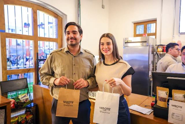 Reynosa, Tam.- El Presidente Municipal Carlos Peña Ortiz acompañado de su esposa Alejandra Yelitza Garza inauguró el Café Moots Ferrocarril, junto a los creadores de la marca, Oscar Emir Rodríguez y Giovanni Gastelum, primeros en el programa municipal «Apertura de Negocios Costo Cero», un paso extraordinario para el desarrollo económico y turístico de la ciudad.