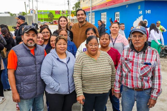 Reynosa, Tam.- En la calle Niquel, de la colonia Villas de Esmeralda, los vecinos recibieron con mucho júbilo al Alcalde Carlos Peña Ortiz, él y su esposa la Presidenta del Voluntariado DIF-Reynosa, Alejandra Yelitza Garza, acudieron a inaugurar la nueva pavimentación hidráulica junto con las familias del sector.