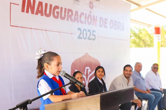 Por parte de los pequeños estudiantes y acompañada por las madres de familia y plantel magisterial, María Sánchez Gómez emitió un breve y emotivo discurso para agradecer por la aplicación del Programa de Obra Pública Más Grande en la Historia de Reynosa en su escuela, ubicada en el fraccionamiento Ventura.