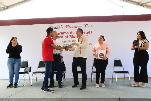- La entrega forma parte del programa Vivienda para el Bienestar, impulsado por la Presidenta Claudia Sheinbaum Pardo.