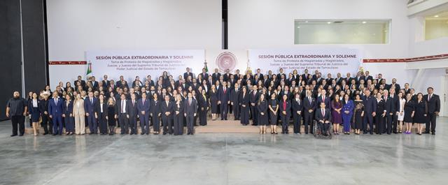 Durante la sesión pública, extraordinaria y solemne del Congreso del Estado, en el Polyforum de esta capital, y luego de la toma de protesta de las y los 147 magistrados y magistradas y juezas y jueces, a cargo del presidente de la Junta de Gobierno, diputado Humberto Prieto Herrera, el gobernador destacó que este acto deja para la posteridad y una imagen inédita, con la concurrencia del pleno de los tres Poderes del
