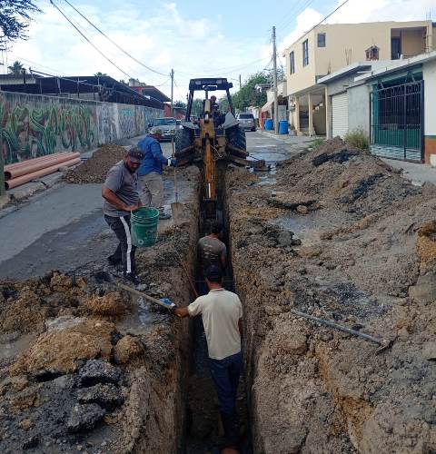 En esta ocasión, personal operativo del organismo inició trabajos sobre la calle Verde, entre Ruby y Cristal, en la colonia Arcoíris, donde se llevará a cabo el reemplazo de 80 metros lineales de tubería de PVC de 8 pulgadas de diámetro, con el objetivo de mejorar el funcionamiento del sistema sanitario de este sector.