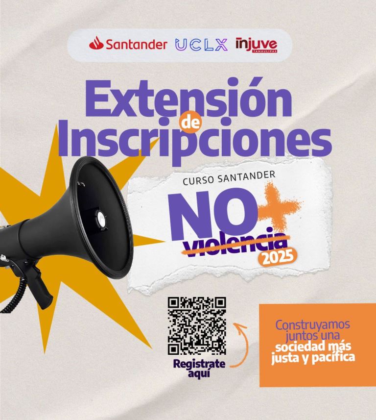 Ciudad Victoria, Tamaulipas.- Con el compromiso de promover espacios seguros, respetuosos y libres de violencia, el Instituto de la Juventud de Tamaulipas (INJUVE) se une al programa “No + Violencia” de Santander México, brindando acceso 100 % gratuito.
