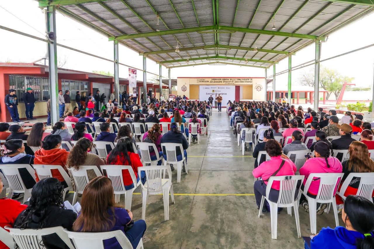 Reynosa, Tam.- Los padres de familia de la escuela secundaria técnica número 45, Ignacio Manuel Altamirano de la colonia Benito Juárez, recibieron el apoyo federal de la Beca Benito Juárez, entregada por el Alcalde Carlos Peña Ortiz y por el Coordinador de Becas para el Bienestar, Alexander Alan Bolaños Tinoco.