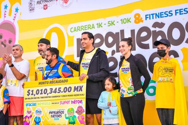 Reynosa, Tam.- La Carrera 1K, 5K, 10K, Fitness Festival Pequeños Héroes 2026 fue inaugurada por el Alcalde Carlos Peña Ortiz y su esposa Alejandra Yelitza Garza, la mañana de acompañados por el Diputado Local Juan Carlos Zertuche Romero y por el Presidente de la Fundación Iluminando Corazones a Niños con Cáncer, una competencia hecha con solidaridad y amor que fortalece el tejido social de nuestra comunidad.