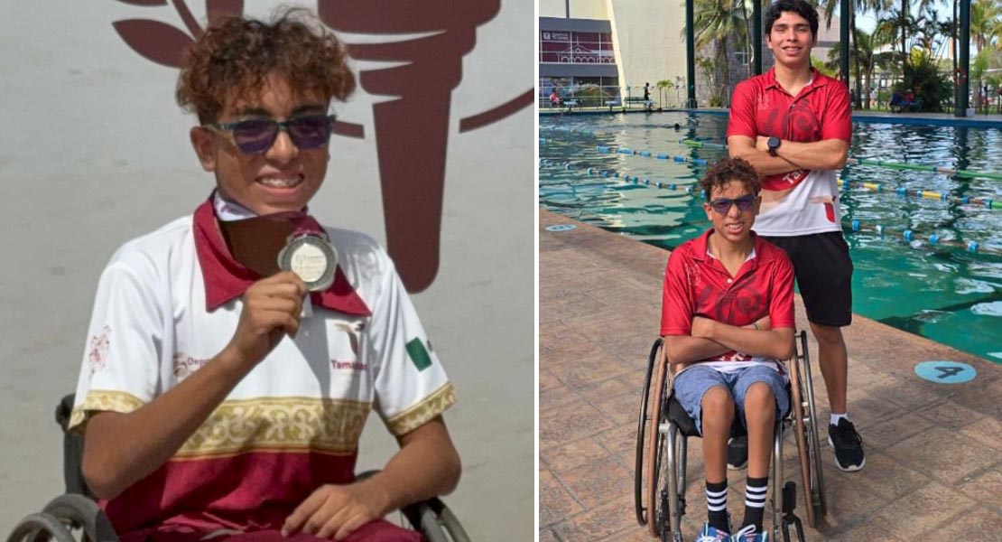 Reynosa, Tam.- El Alcalde Carlos Peña Ortiz felicitó al nadador Santiago Fonseca Ramírez por su destacada participación en la Paraolimpiada Nacional CONADE, donde logró conquistar la medalla de plata en la prueba de 100 metros libres S6, categoría 13-15 años.