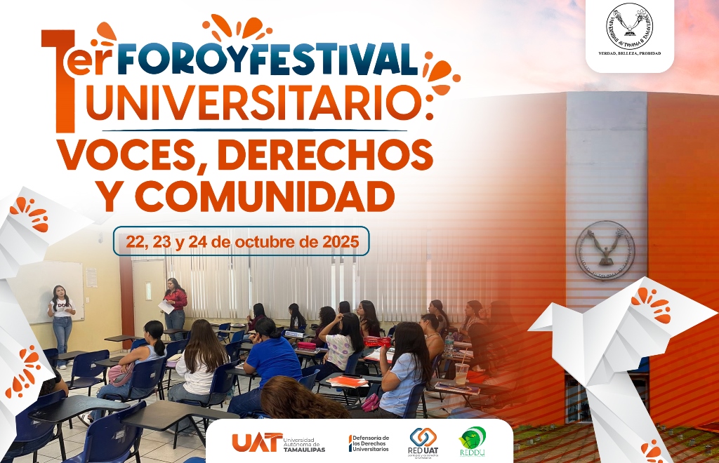 Ciudad Victoria, Tam.- La Universidad Autónoma de Tamaulipas (UAT) será sede del Encuentro de la Red de Organismos Defensores de los Derechos Universitarios (REDDU), el cual se llevará a cabo del 22 al 24 de octubre. En este marco, se realizará también el Primer Foro y Festival Universitario: Voces, Derechos y Comunidad.